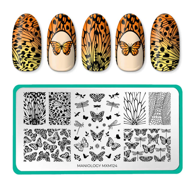 Ballet of Wings (MXM124) Nail Stamping Plate – Butterfly & Dragonfly Wing Motifs