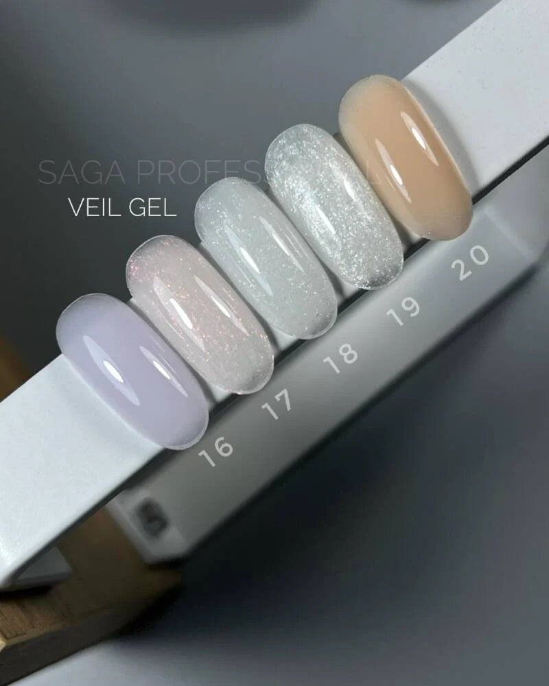 SAGA Builder Gel Veil in shade #20 is a professional-quality hard builder gel designed for creating ultra-strong and enduring nail extensions and overlays. This shade is a classic, neutral nude camouflage color, formulated to seamlessly match the natural tone of the nail bed and conceal any imperfections or discoloration. The "Veil" line is renowned for its excellent coverage and ability to create a flawless, natural-looking foundation. This hard gel features a medium density consistency with superb self-leveling properties, ensuring smooth application, effortless apex modeling, and minimal need for extensive filing. It is a universal gel suitable for technicians of all experience levels.