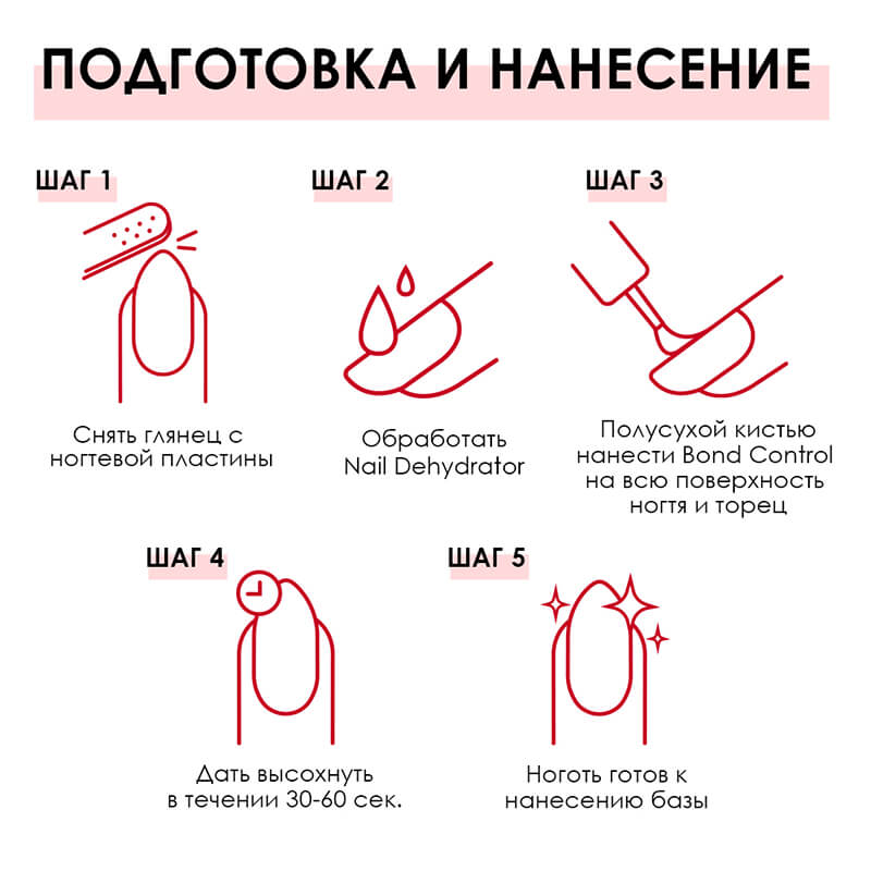 Apply: Wipe the brush well against the bottle neck—you only need a very small amount. Apply a thin layer of Bond Control over the entire nail plate, being careful not to touch the skin.