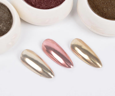 Add a touch of opulence to your nails with metallic pigment powders. Shimmering golds, silvers, and bronzes bring a luxurious and modern edge to your creations, perfect for special occasions or a dose of everyday glamour.
