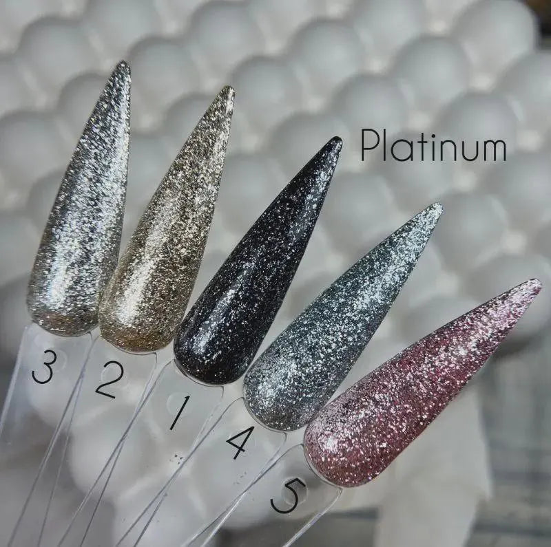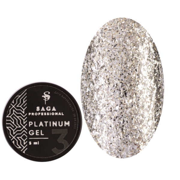 SAGA Platinum Gel № 3 is a high-intensity decorative gel designed for creating a luxurious, liquid-metal effect on the nails. This specialized formula is saturated with ultra-fine, high-quality foil flakes and shimmer, providing a dense "platinum" finish that offers incredible brilliance and reflective depth.