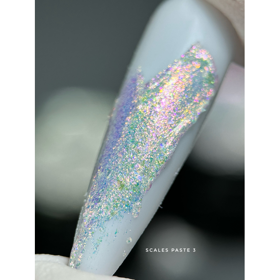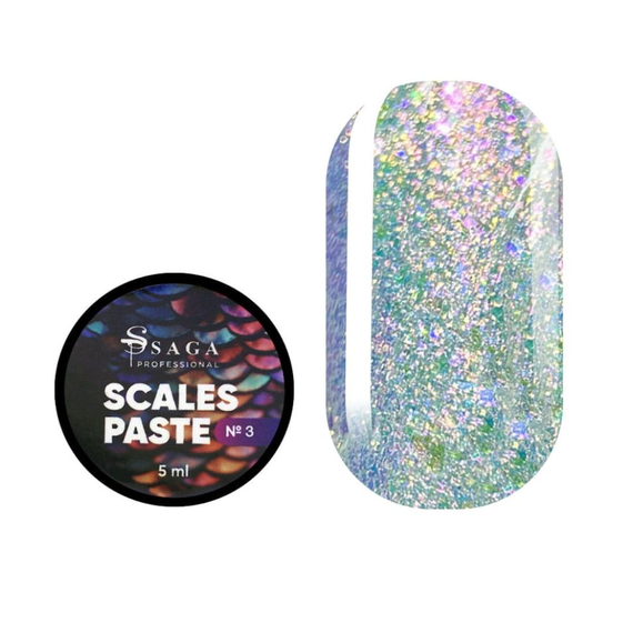 SAGA Scales Paste No. 3 is a high-density decorative gel designed for nail technicians looking to create bold, multidimensional nail art. This specialized paste features a medium-thick consistency that allows for precise application and stunning reflective effects.