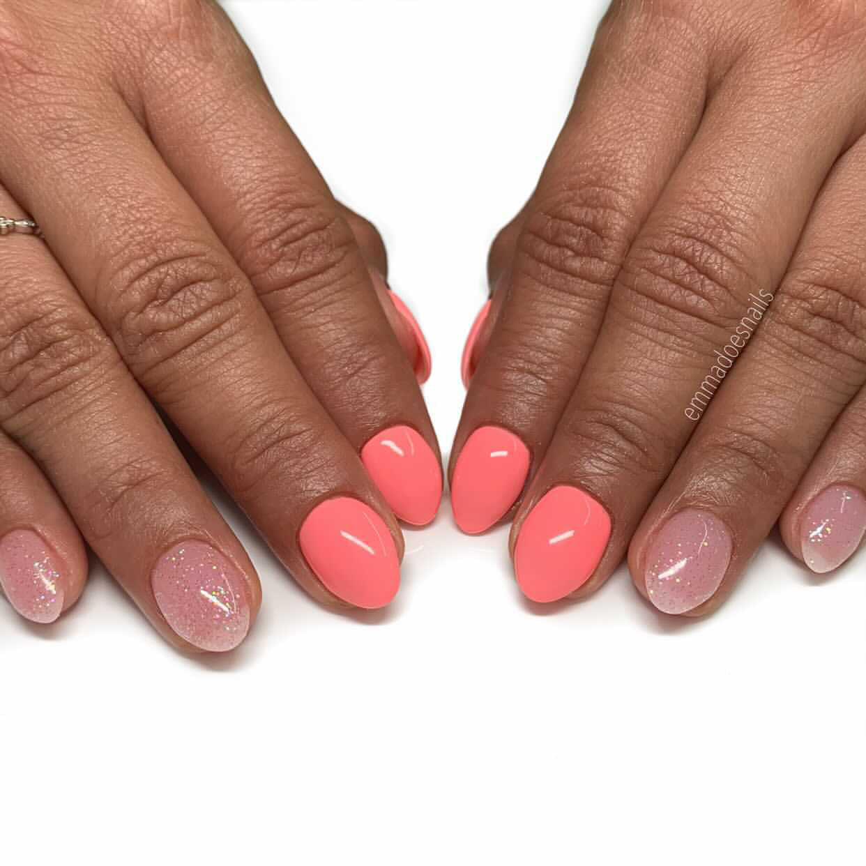 Bright pink manicure and pedicure gel polish