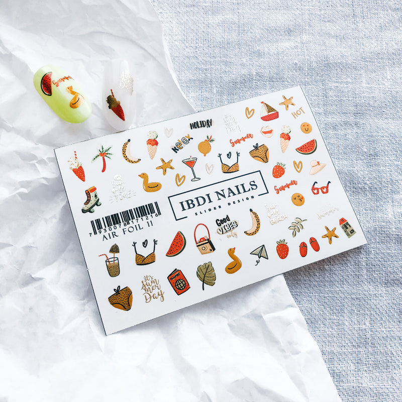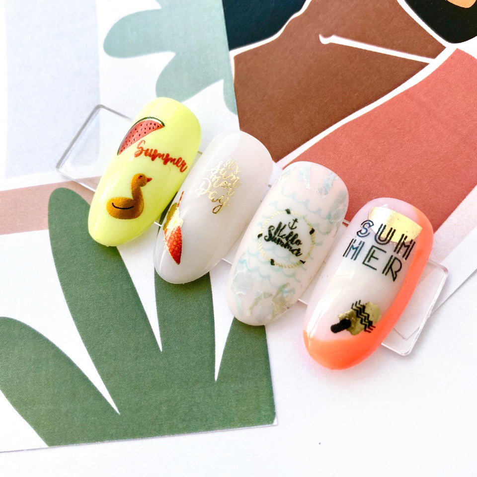 Designs for nail decal: Fruit, Banana, Lemon, Ice Cream, Roller Skates, Watermelon, Swimsuit, Beach, Summer