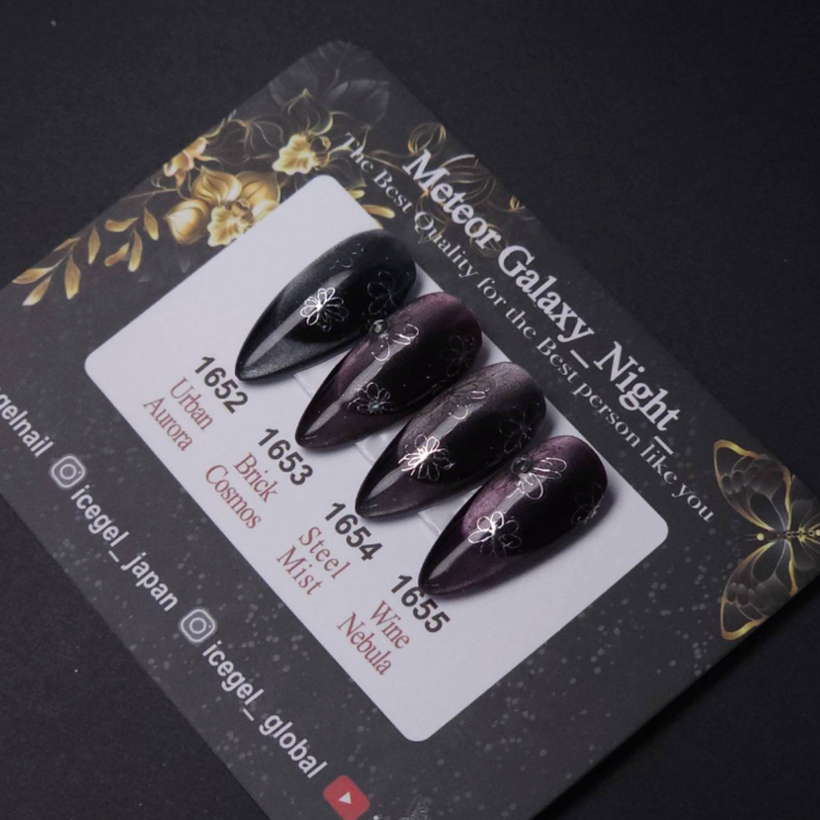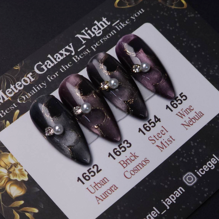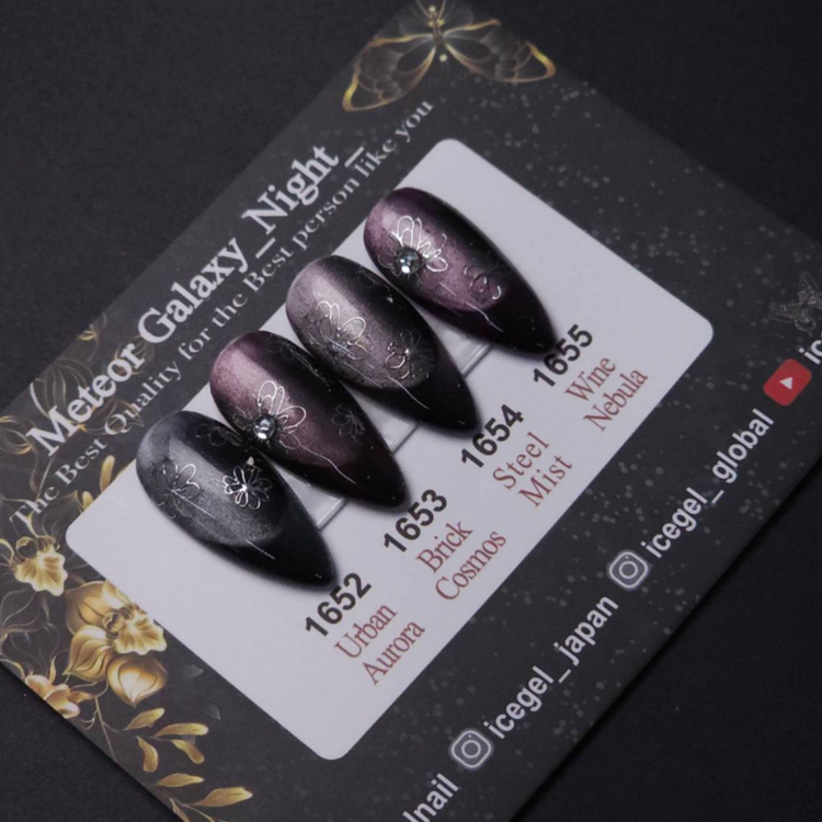 Ignite the night sky on your fingertips with the Meteor Galaxy - Night collection. Featuring shades 1652, 1653, 1654, and 1655, this magnetic gel polish series delivers a striking, meteor-like effect that captures the raw power of the cosmos.
