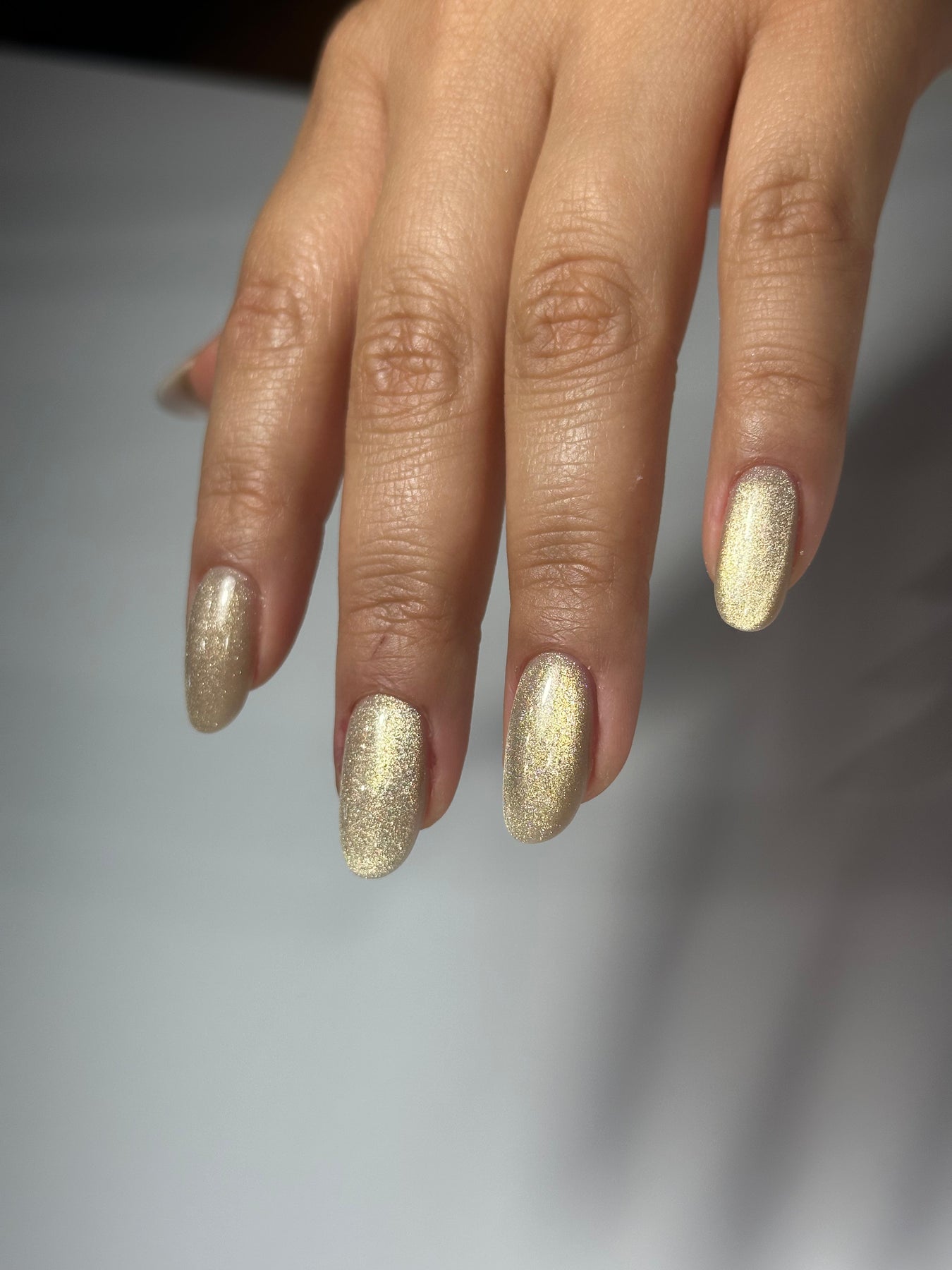 - Use a magnet to create the captivating cat eye effect, manipulating the shimmer into a mesmerizing line.