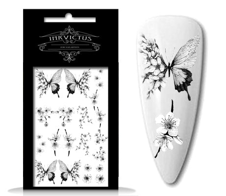 INKVICTUS butterfly and flower nail decals / sliders 5170