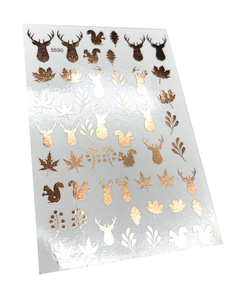 INKVICTUS Winter reindeer nail decals / sliders copper foil 5590