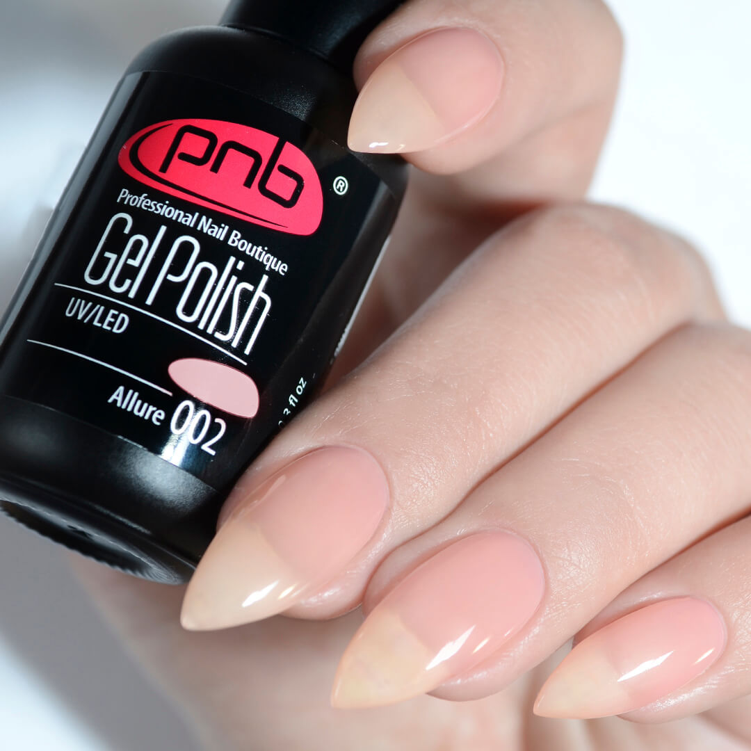 - Apply Allure Nude Gel Polish after a base coat.