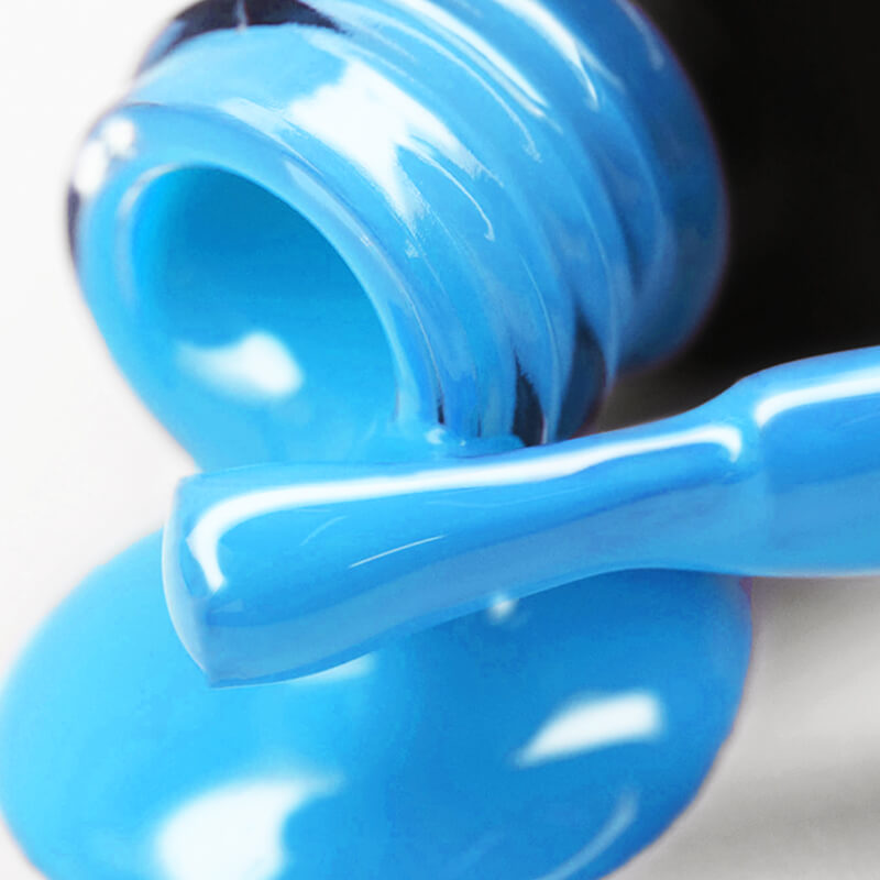 - Next, apply a thin layer of our Aqua Blue Gel Polish, ensuring even coverage without flooding the cuticles.