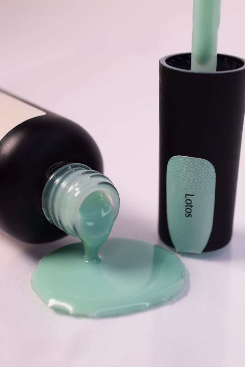 Lotus, mint gel polish — this shade is like a mint glaze that covered the nails — out of trend. Incredibly