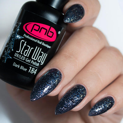 PNB Sparkling blue gel nail polish for a Russian manicure