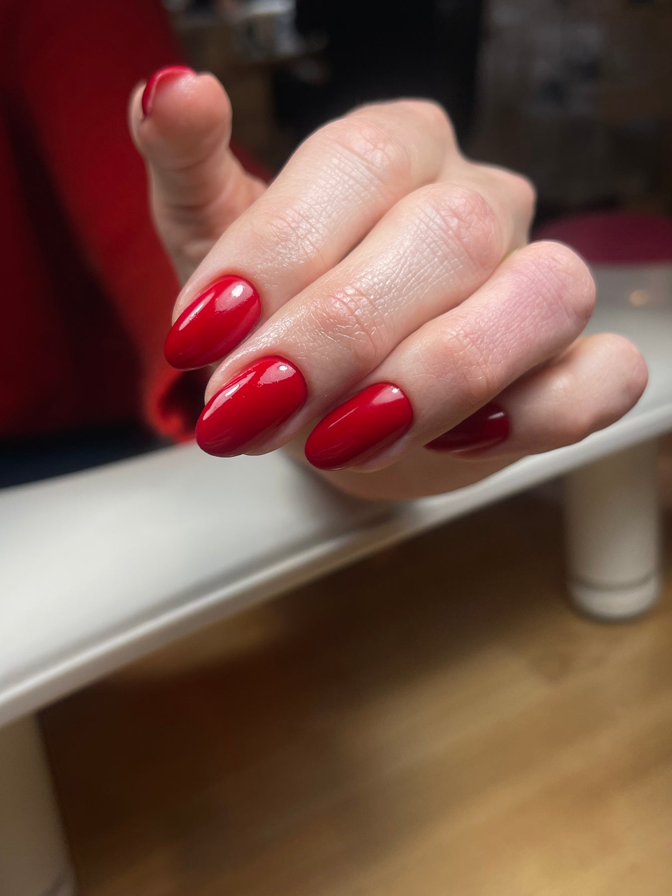 - Apply two coats of PNB 8 ml color gel polish, sealing the nail ends after each coat and curing them under a UV lamp.