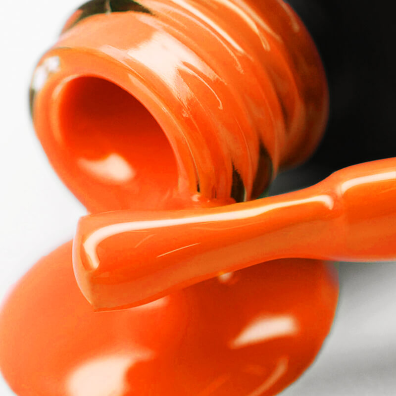 • Pro Tip: Using a white-tinted base like PNB Fiber Base Milk White will make this orange appear even more neon and vibrant.