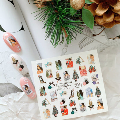 Designs for nail decal: Fashionista, Christmas Tree, Holiday