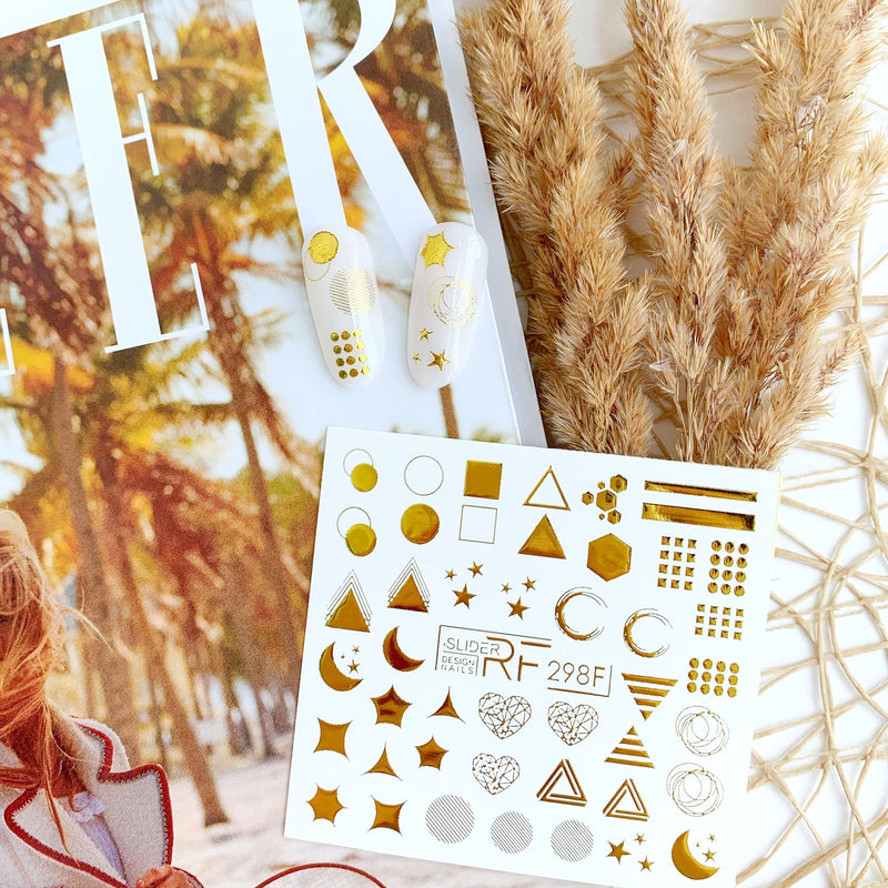 Designs for nail decal: Foil, Gold, Geometry, Triangle, Square, Circle, Heart,