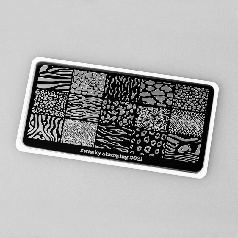 Designs on stamping plate: Peacock, Cheetah, Zebra, Cow print