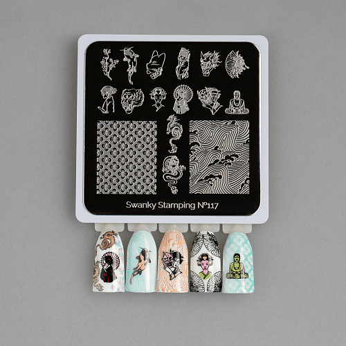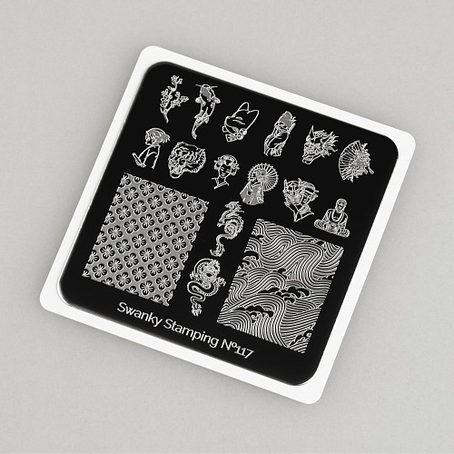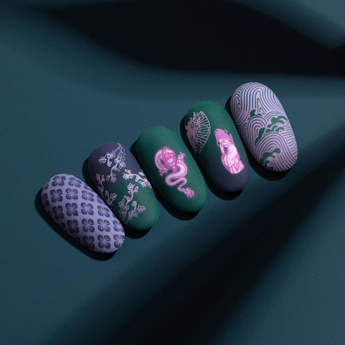 Designs on stamping plate: Fish, Dragon, Fan, Anime,  Buddha, Lion, Sakura, Japanese design nail art