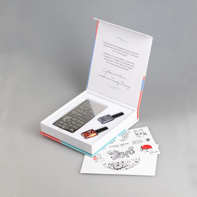 Easy to use, perform normal manicure, add desired color to stamping plate, scrape, stamp and finish with top coat.