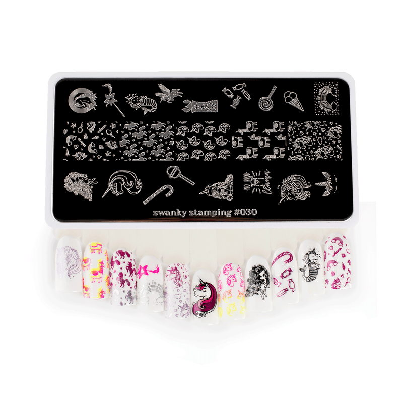 Designs on stamping plate: Unicorn, Candy