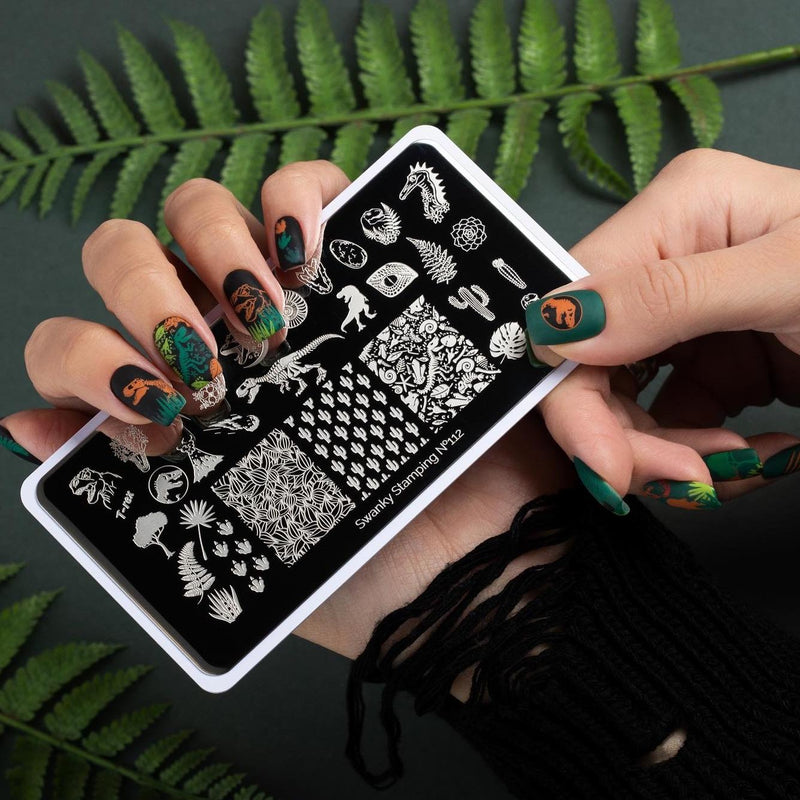 Designs on stamping plate: Dinosaur, T-rec, Dino, Animal Nail art