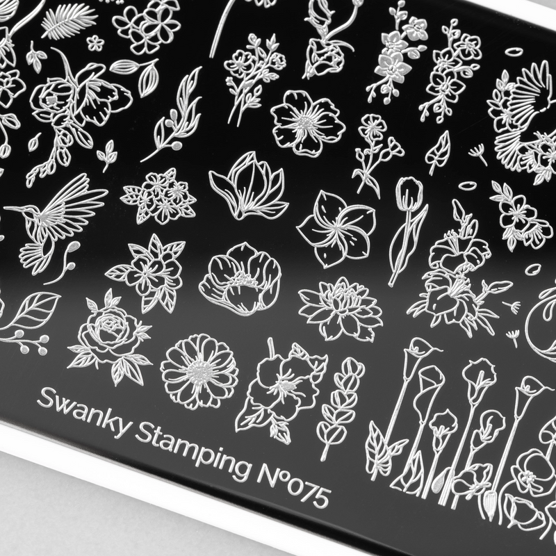 Designs on stamping plate: Flowers, Bird, Birds, Floral