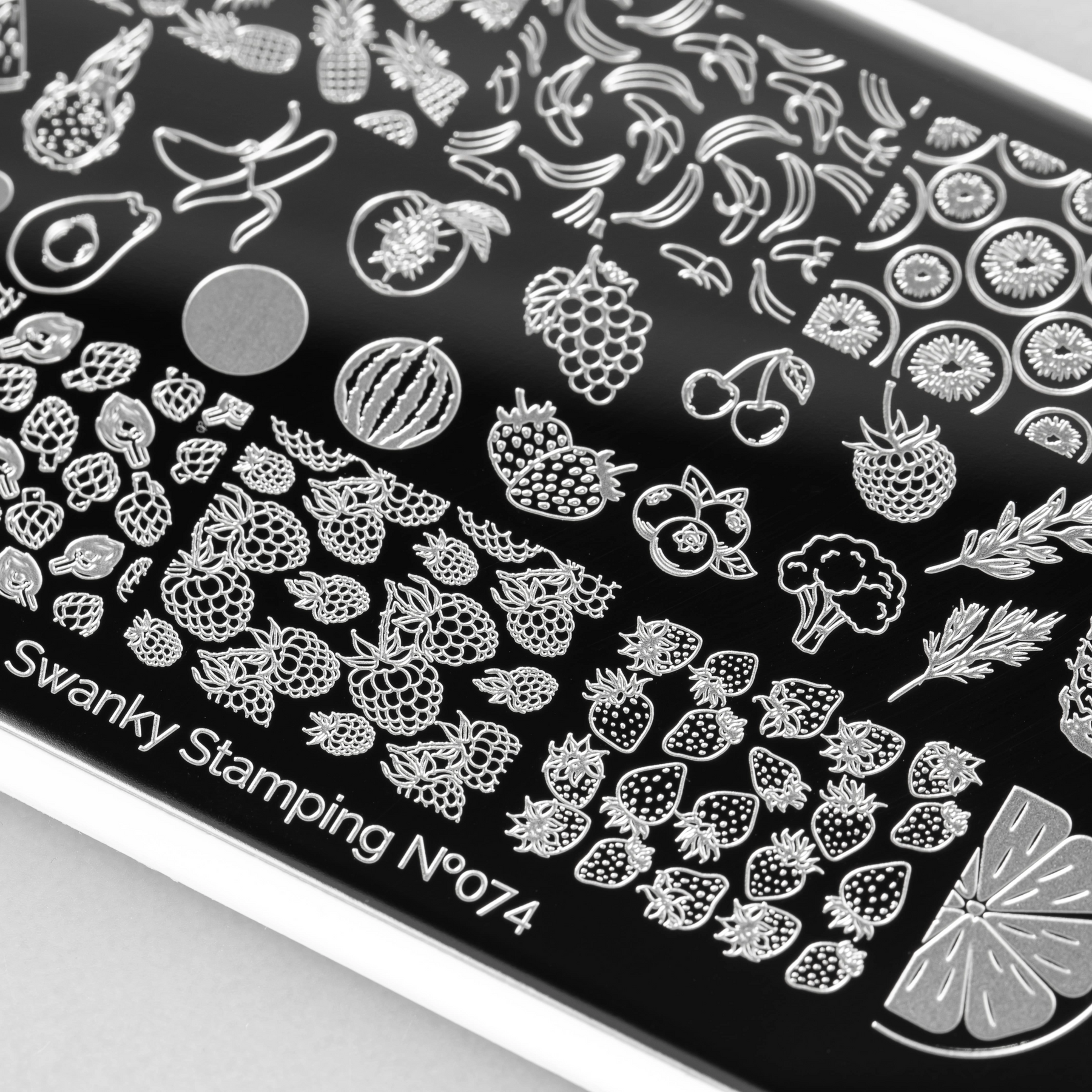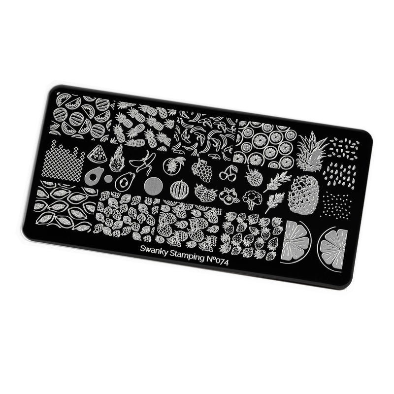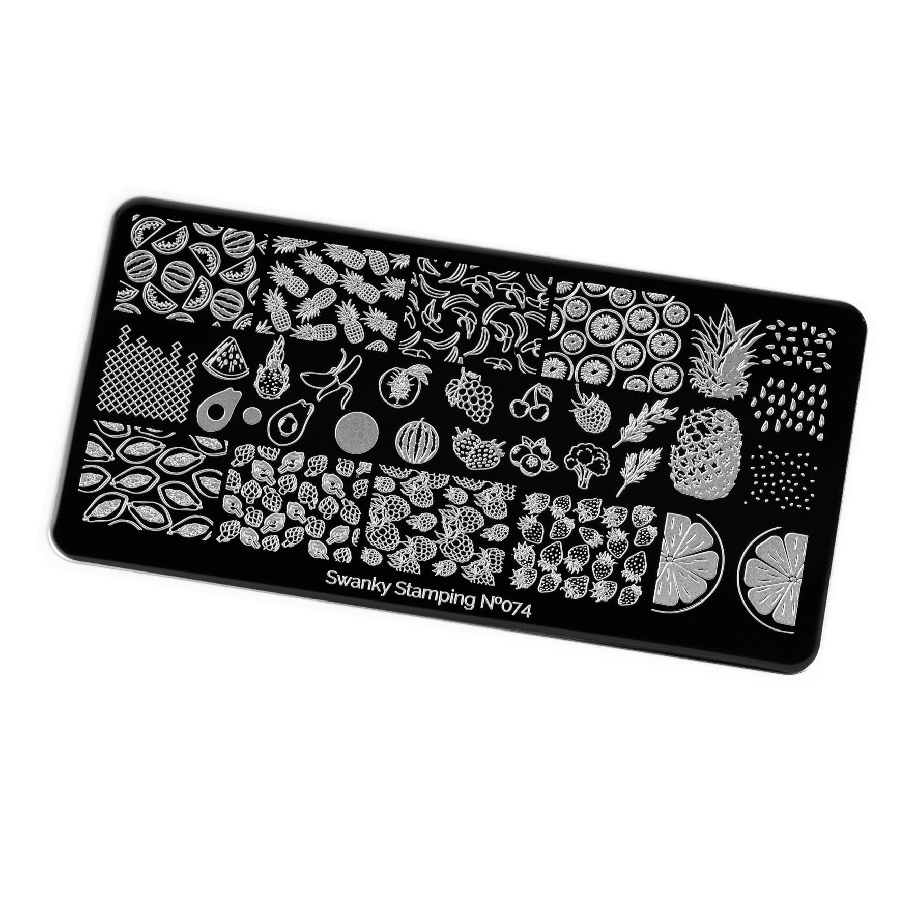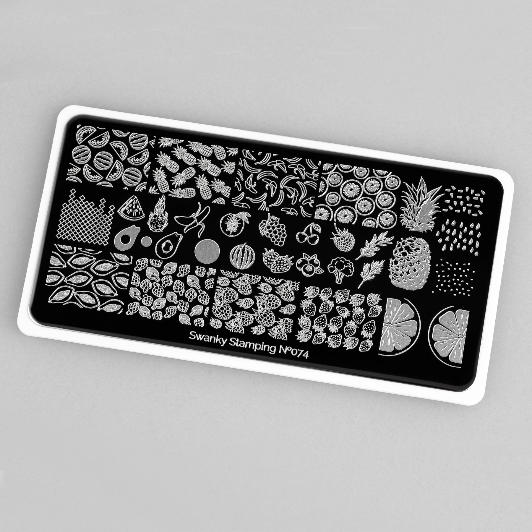 Designs on stamping plate: Food, Vegie, Vegetable, Strawberry, Pineapple, Bananas, Watermelon, Apple, Avocado, Summer